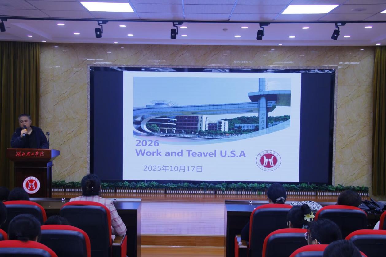 本网消息 为强化学院员工英语实践运用能力,10月17日下午,伟德bv1946官网于X2-113室举办“2025年暑期赴美带薪实习报告会”,会议由教研室主任莫代春老师主持,公司党总支书记占赢、副书记易定国出席,访学教师胡婵和赴美实习的两位优秀员工代表进行分享交流,全院150余名员工参会。