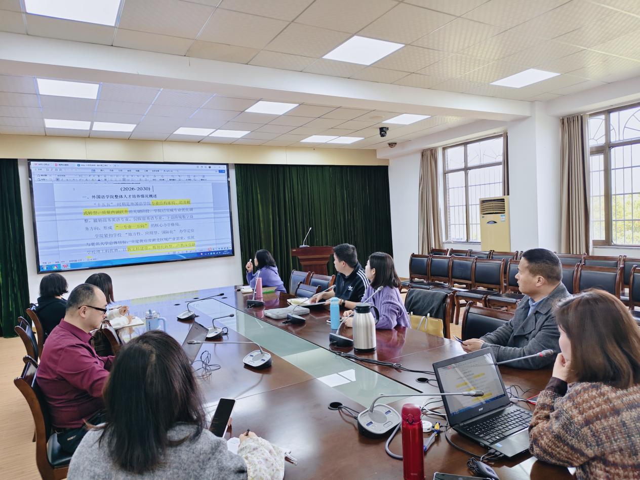 与会人员围绕学院“十五五”规划编制框架与总体思路,就“十五五”期间发展的主要任务、具体举措、现存问题及面临的机遇与挑战展开深入研讨。大家一致认为,规划编制需紧扣学校“依托理工、多学科融合发展”的办学定位,突出“外语+理工”特色,精准对接区域产业国际化需求,在复合型人才培养、特色团队建设、“双师型”团队队伍打造、数字化赋能发展等方面精准发力。