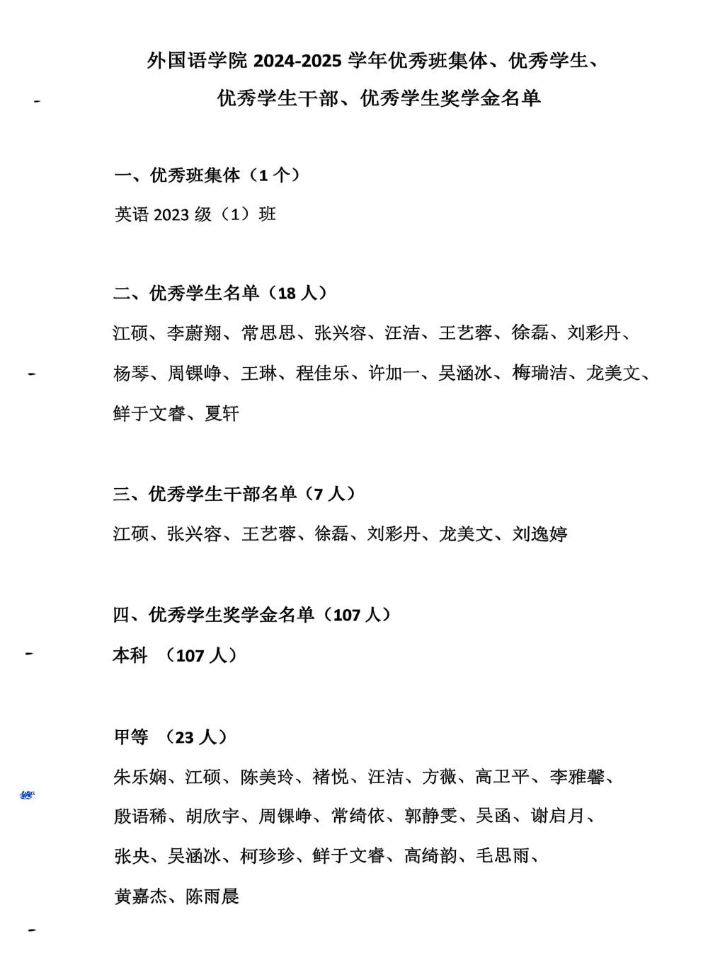 伟德bv1946官网2024-2025学年优秀班集体、优秀员工、优秀员工干部、优秀员工奖学金名单