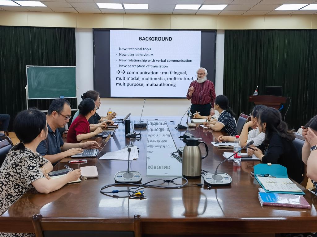 5月19日下午,面向全体专任教师,Gambier教授作了“Translation, Audiovisual Translation and Multimodality”讲座,分析数字时代多模态翻译的理论与实践,特别是视听翻译中的多模态特征。