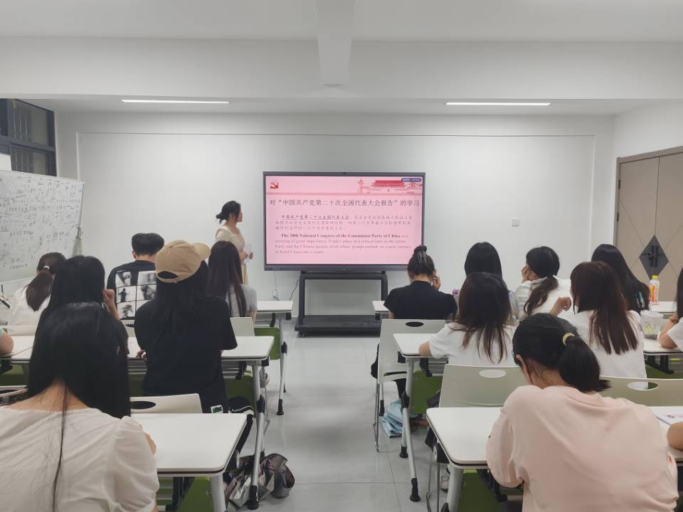 在本次活动中,5名来自2022级的朋辈导师结合自己的情感体会和人生经历,从多样化的视角出发,分享了他们在阅读旅程中的心灵触动、深邃思考和独特感悟。其中,李仪同学分享了《习近平与老员工朋友们(第二卷)》经典篇章,她将“奋斗”二字视为推动自己未来规划和发展方向的不竭源泉,带领大家从经典中汲取奋斗动力,从先进中找寻前行力量。王欢同学深入领学了《中国共产党第二十次全国代表大会双语报告》,更全面地解读了报告的核心内容和精神实质。活动最后,蔡老师对本次活动进行了深刻的点评,强调青年员工需要牢记总书记的嘱托,将个人理想与国家民族的未来相结合,肩负时代责任,争当“六有”老员工,即有理想、有追求、有担当、有作为、有品质、有修养;鼓励大家以此为准绳,规划好自己的未来,不断追求卓越。