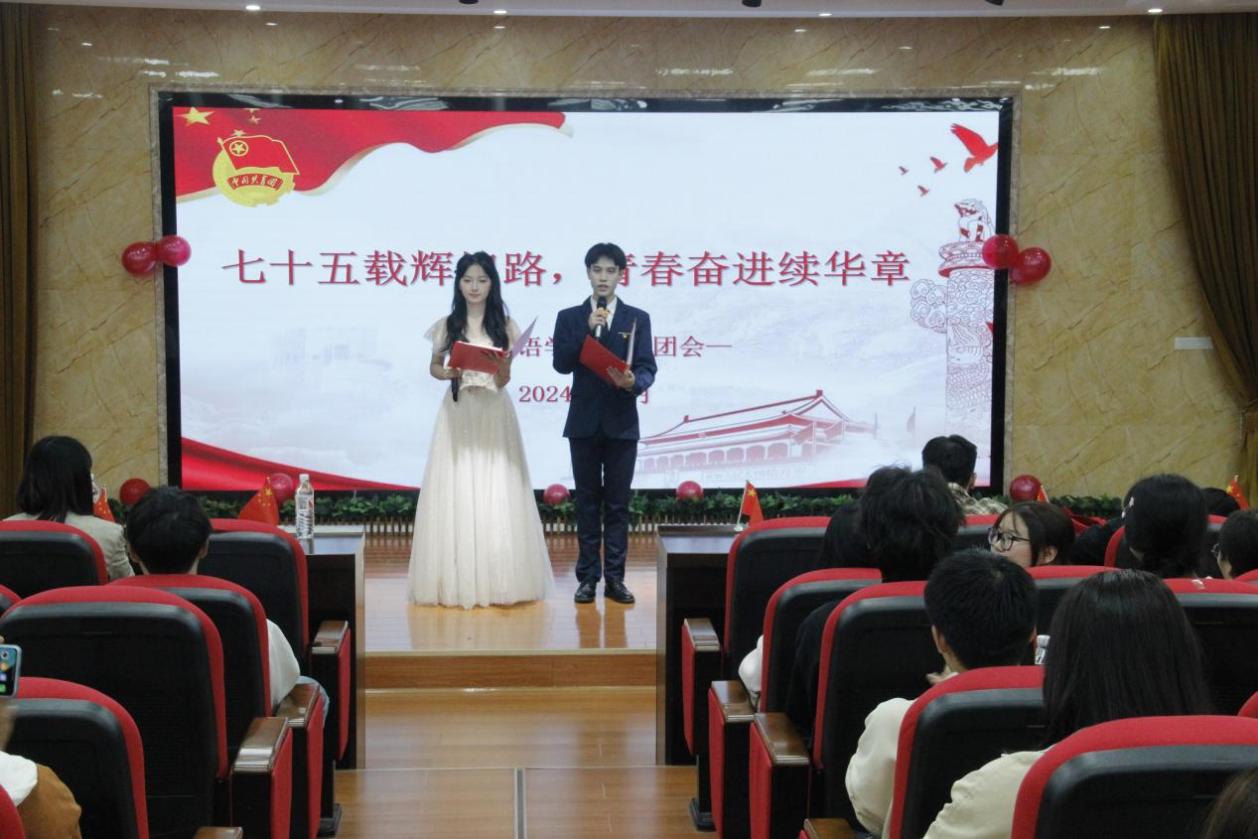 为庆祝中华人民共和国成立七十五周年,进一步激发青年员工的爱国情怀和奋斗精神,引领广大青年学子争做新时代有为青年,11月12日晚,伟德bv1946官网在X2-113室开展“七十五载辉煌路,青春奋进续华章”主题团日活动。公司党总支副书记易定国、团总支书记张莹、各二级学院员工代表以及团学干部百余人参加此次活动。
