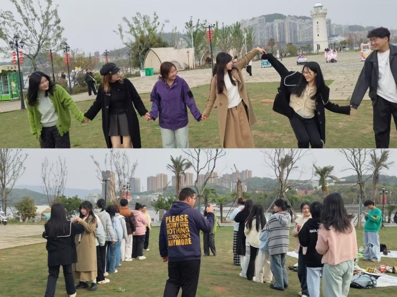 本网消息 阳春三月,草长莺飞。3月30日下午2024级英语1班的同学们在班主任老师的带领下,在未苏湾开展团建活动。本次活动以"凝聚同窗情,共赴青春约"为主题,通过丰富多彩的游戏环节和才艺展示,让同学们在轻松愉快的氛围中增进友谊、收获成长。