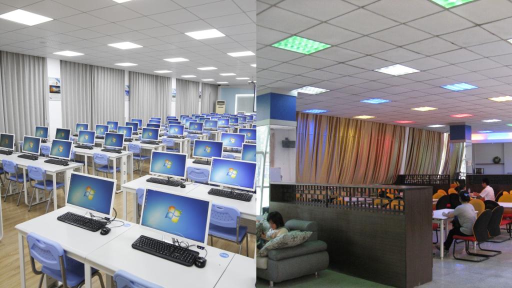 公司有一个2700多平方米的省级英语语言学习示范中心,可同时容纳1500名同学在这里进行语言学习与实践活动。里面有专业实验室、语音实验室,正在筹建一个“教、学、评、测、研一体化大学外语数智实训中心”。还有一个环境优雅的UC,供员工休闲、看书,交友。